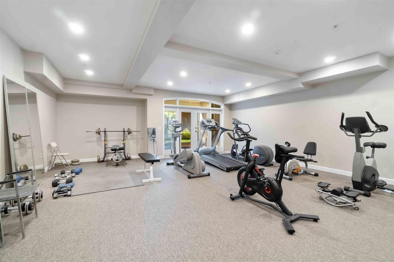 Air conditioning, elevator, exercise centre, garden/common outdoor space, in-suite laundry, and wheelchair access.
