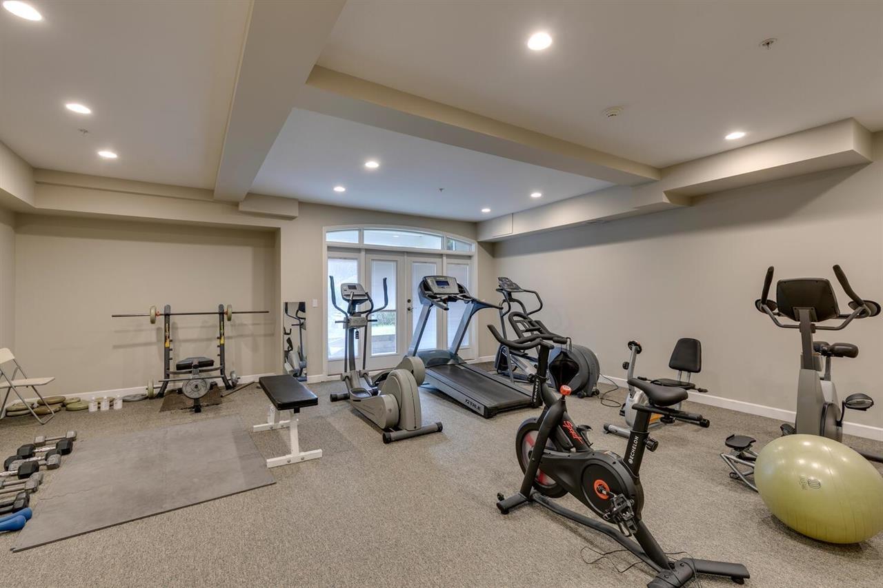 Air conditioning, elevator, exercise centre, garden/common outdoor space, in-suite laundry, wheelchair access, and recreation/clubhouse facilities.