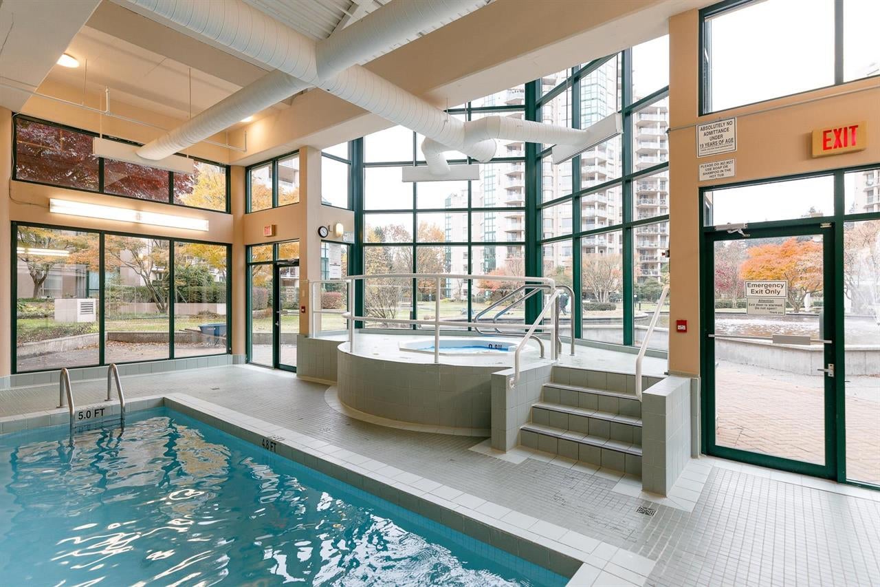 Amenities include an indoor pool, hot tub, sauna, gym, residents’ lounge, squash/racquetball court, outdoor BBQ area, landscaped gardens, bike storage, and in-suite laundry—located in a separate amenities building shared by the four Bosa towers.