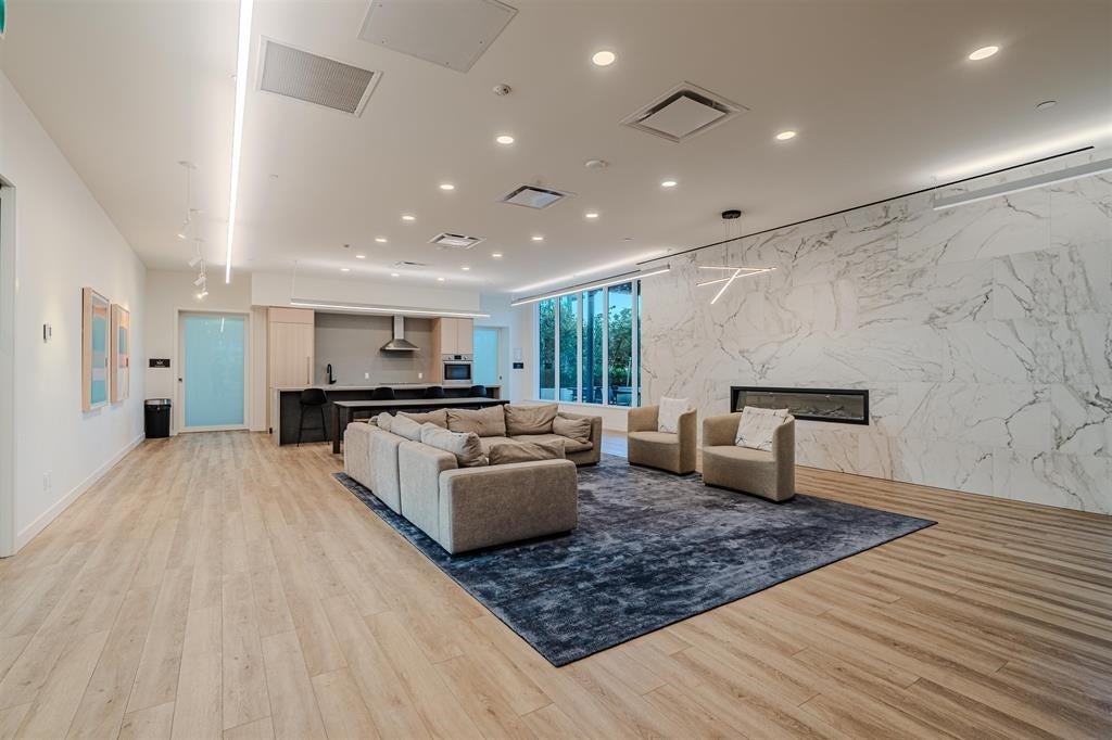 Fitness centre and yoga studio, co-working lounge and boardroom, indoor and outdoor lounges, private dining and BBQ areas, sports courts, outdoor fitness track, children’s play area, sound studio, and workshop space.