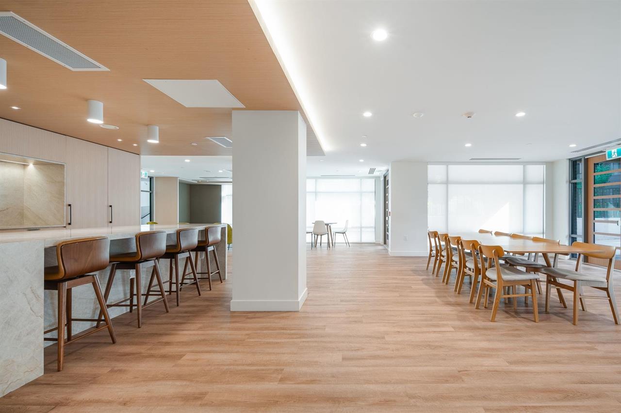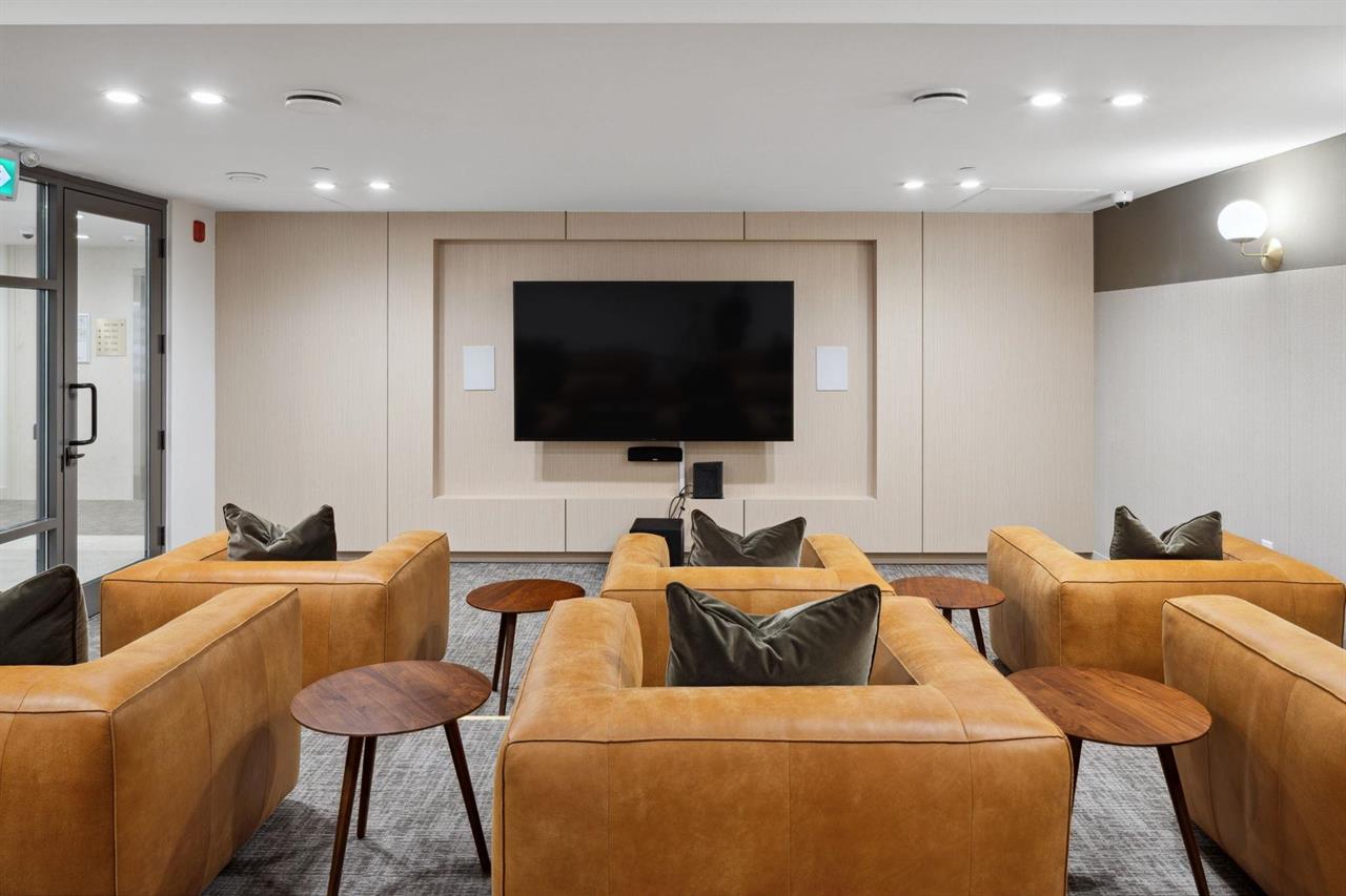 Fitness centre, spin studio, theatre, games room, resident lounge, co-working spaces, outdoor courtyard with BBQ area, landscaped green space, and shared indoor and outdoor amenity areas within The Oaks community.