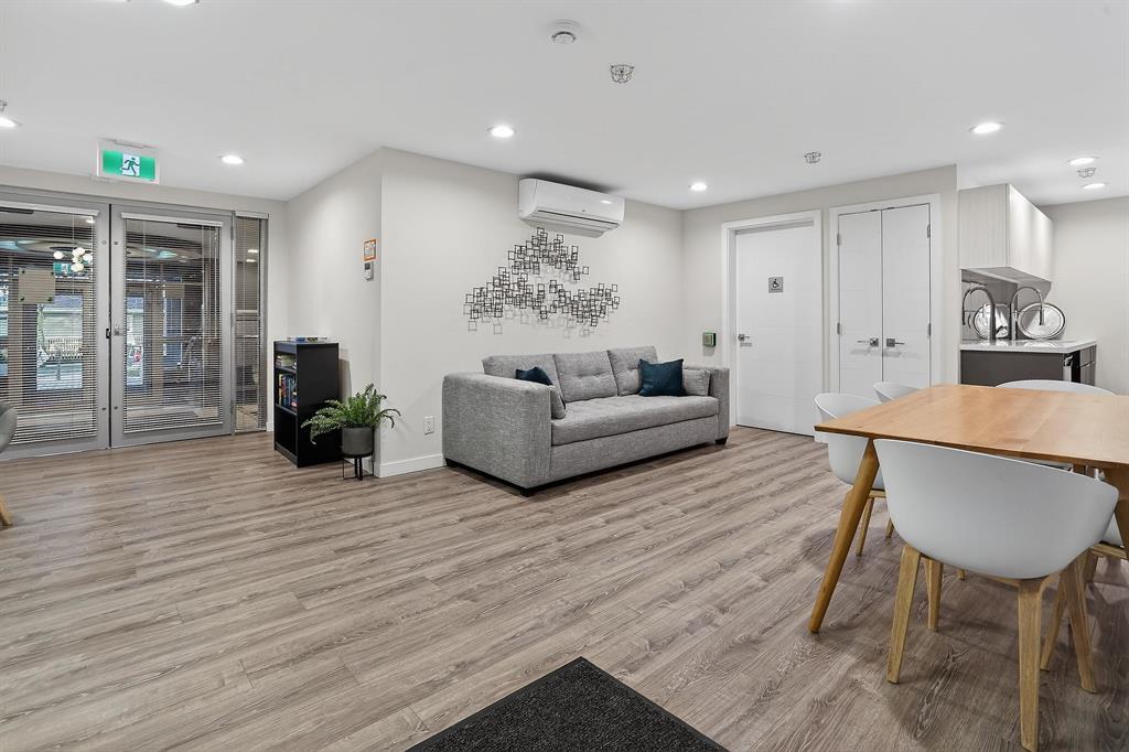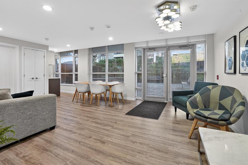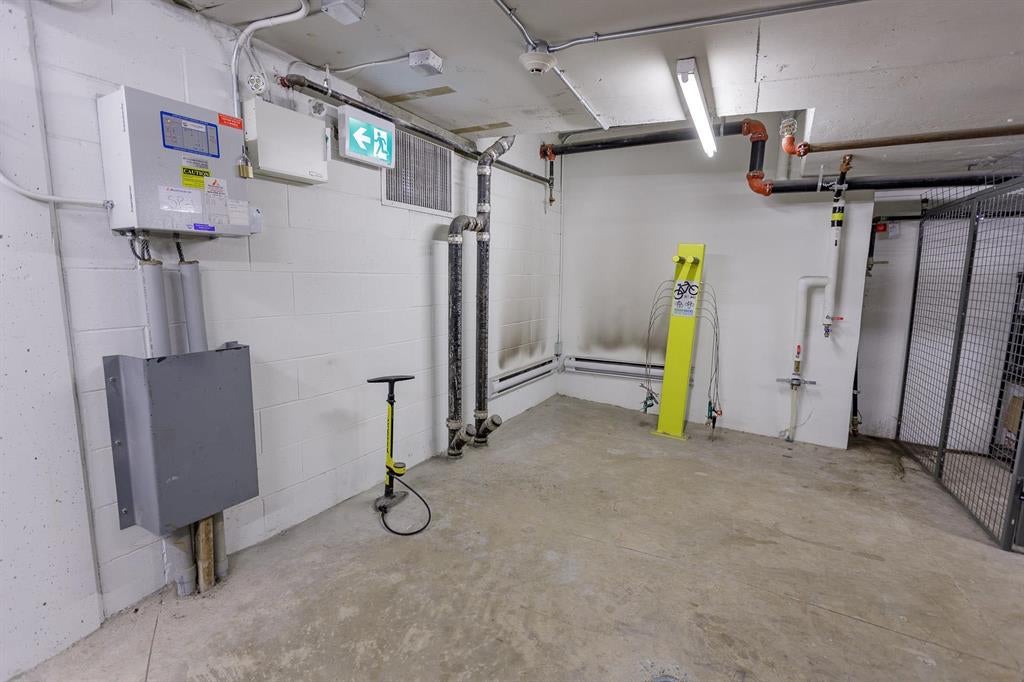 Lounge/party room, guest suite, bike room and bike maintenance area, garden/outdoor space, storage lockers, underground parking, and security features.