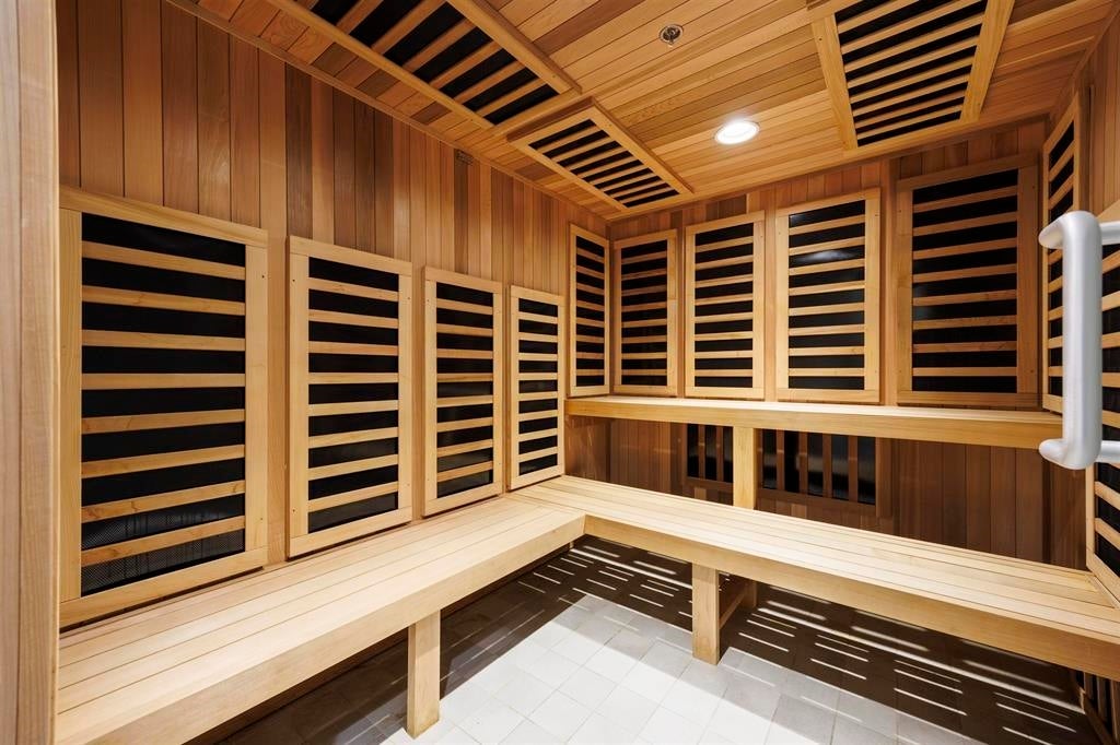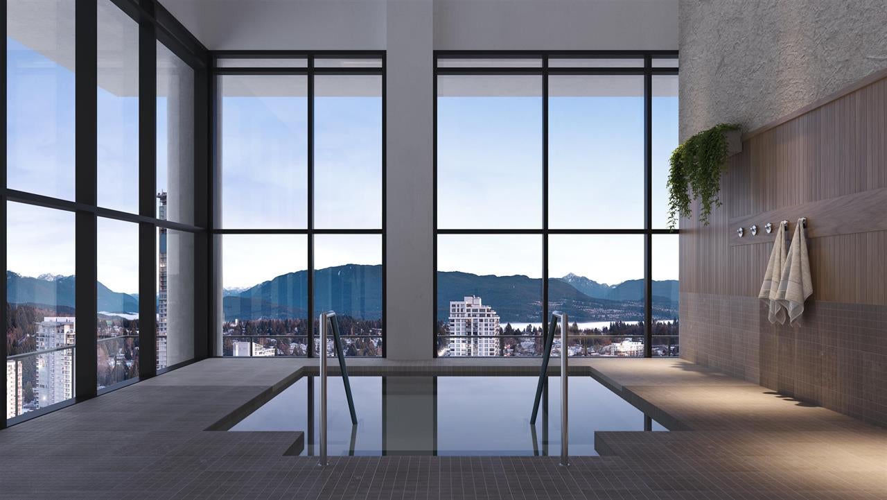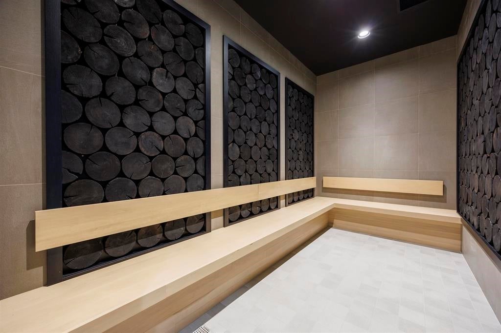 Fitness centre, concierge, lounge areas, bike storage, sauna and spa-inspired wellness spaces, yoga areas, hot tub, and panoramic outdoor relaxation areas.