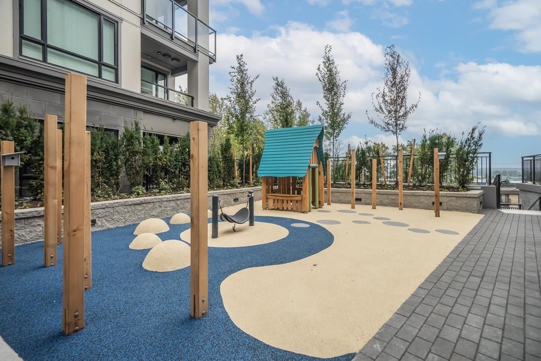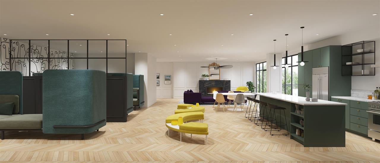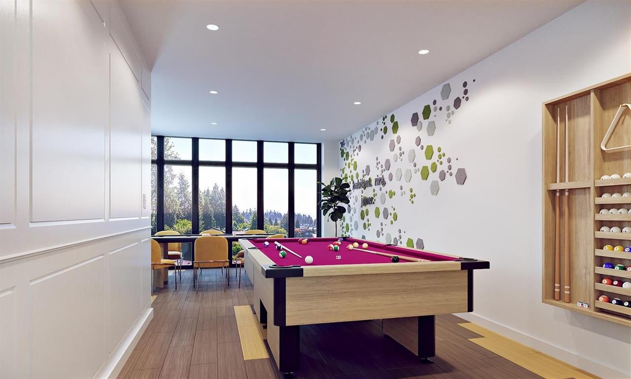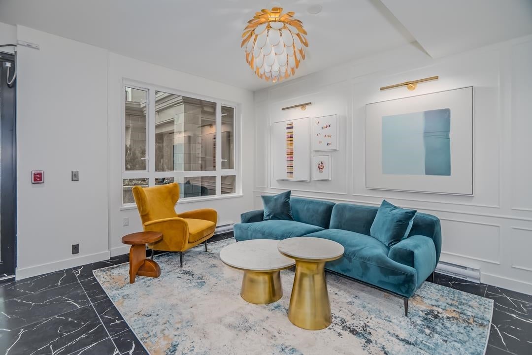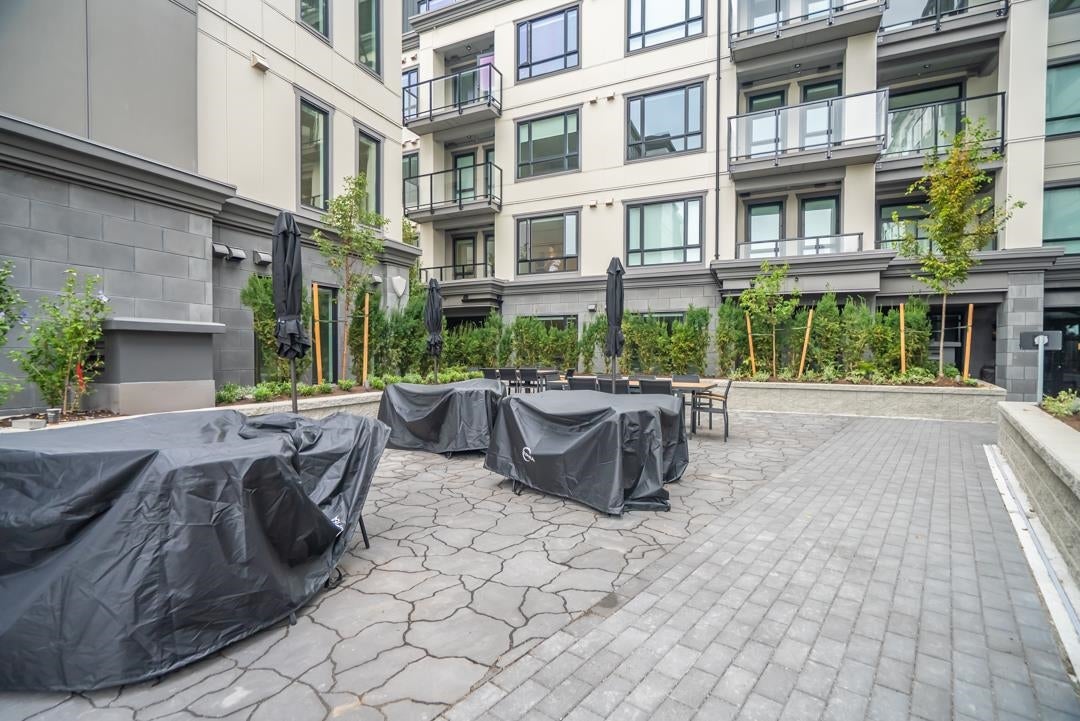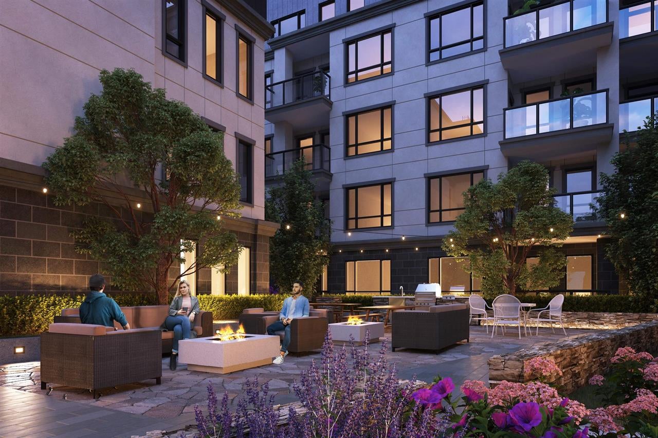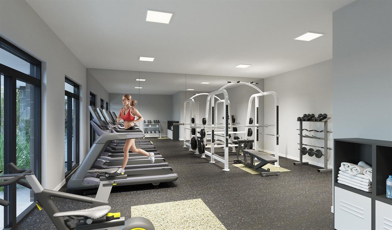 Fitness centre, social lounge/amenity space, outdoor courtyard areas, bike storage, and underground parking.