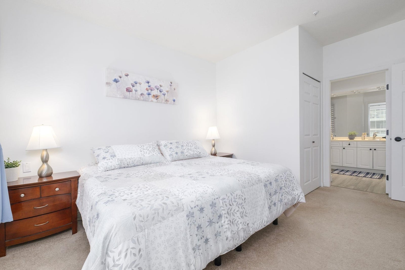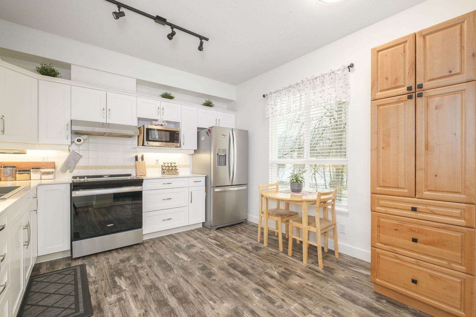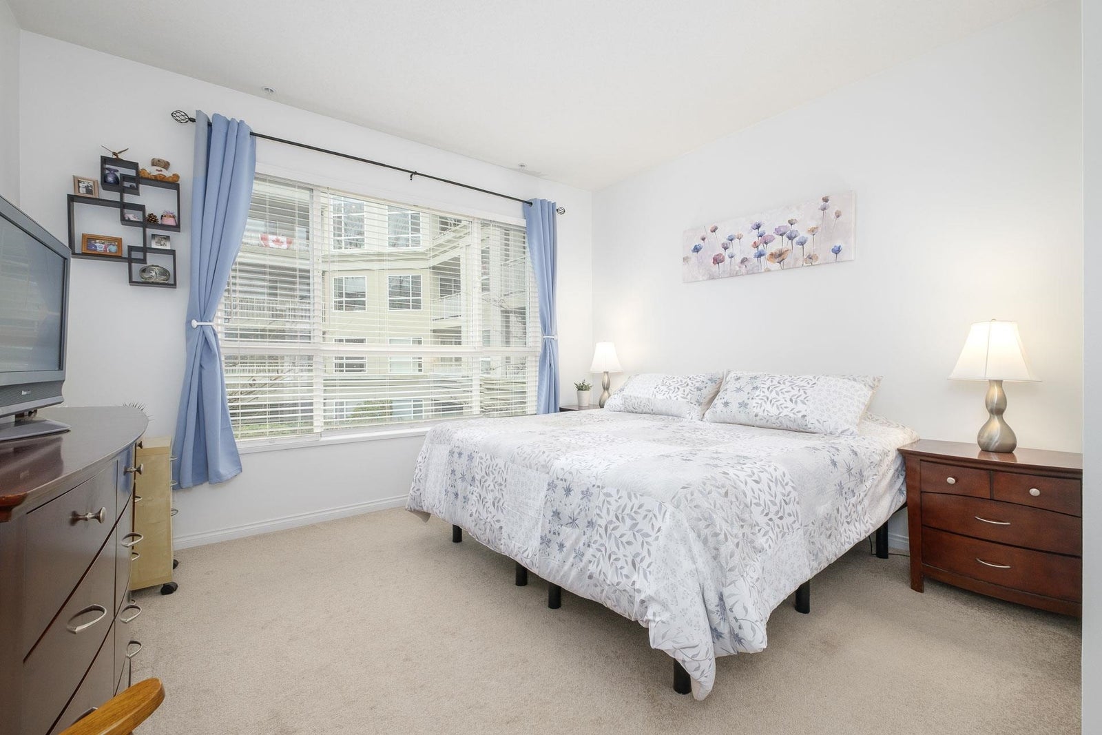 Beautifully renovated 2-bed, 2-bath corner unit with stunning Lafarge Lake views! Floor-to-ceiling windows flood the space with natural light. The brand-new kitchen features high-end white cabinets, granite countertops, a stylish backsplash, premium Whirlpool S/S appliances, and a cozy breakfast nook. Designer vinyl plank flooring and elegant crown molding add a modern touch. The spacious primary bedroom fits a king-size bed, with a luxe ensuite featuring double sinks and a soaker tub. The second bedroom has its own full bath. Prime location—steps to SkyTrain, Coquitlam Centre, restaurants, transit & more! One person must be 55 or older and no one under 19. Rentals not allowed. 1 dog (14 inches at shoulder) or 1 cat.