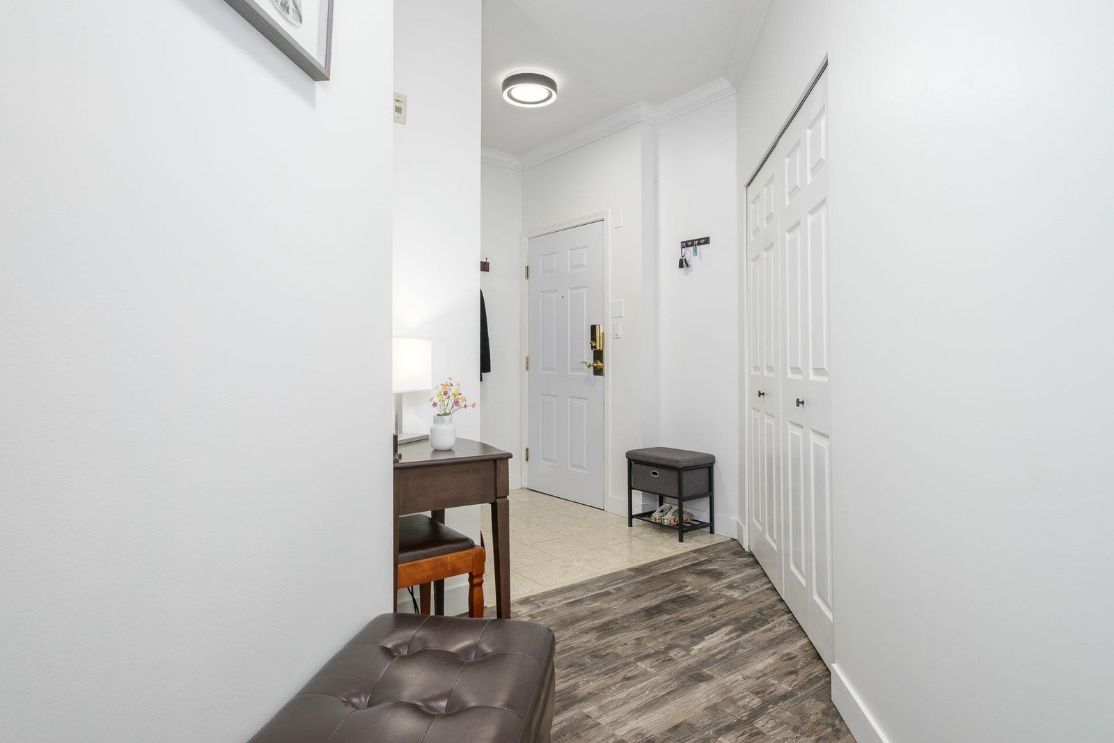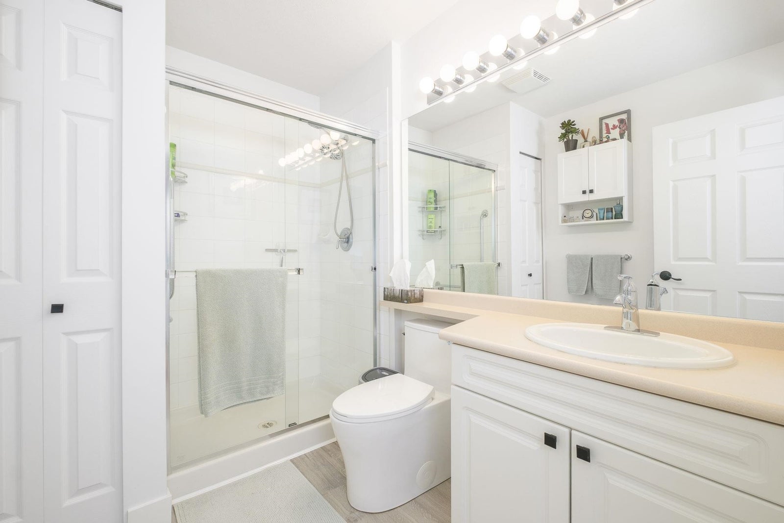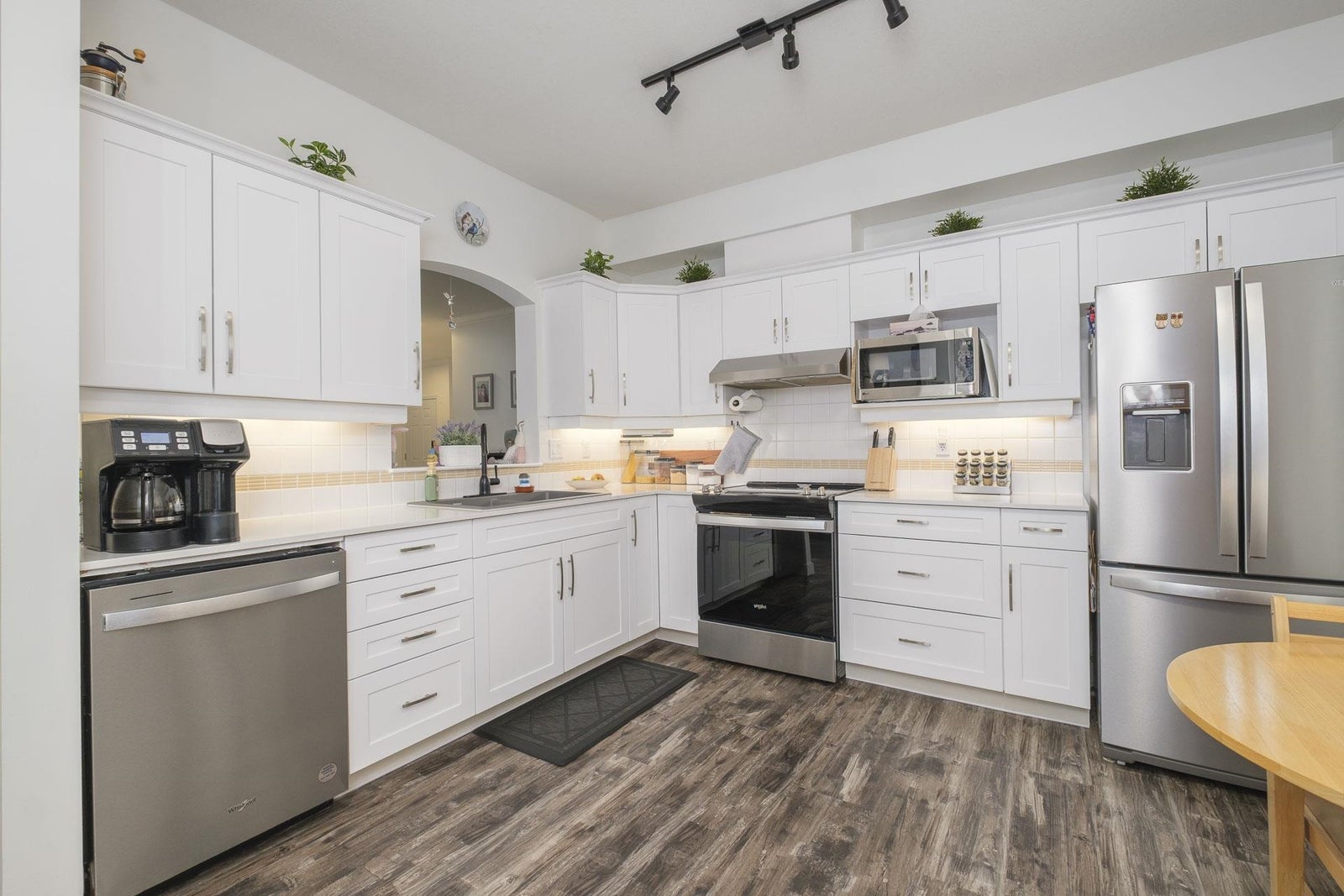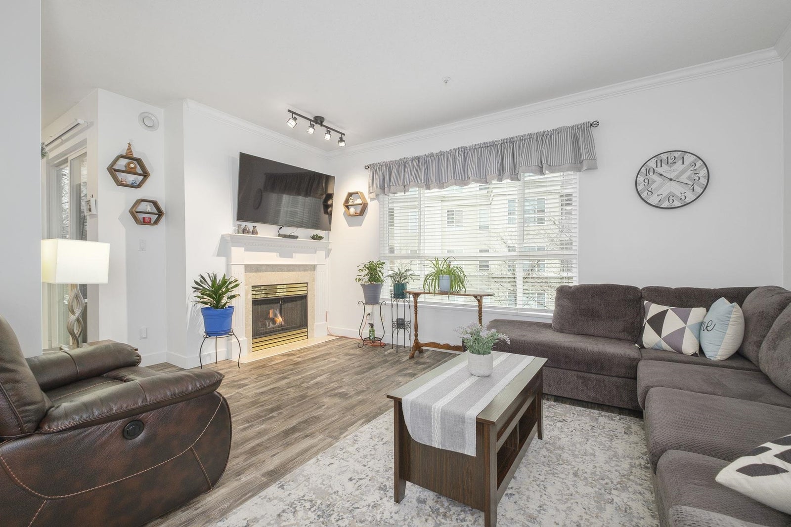 Beautifully renovated 2-bed, 2-bath corner unit with stunning Lafarge Lake views! Floor-to-ceiling windows flood the space with natural light. The brand-new kitchen features high-end white cabinets, granite countertops, a stylish backsplash, premium Whirlpool S/S appliances, and a cozy breakfast nook. Designer vinyl plank flooring and elegant crown molding add a modern touch. The spacious primary bedroom fits a king-size bed, with a luxe ensuite featuring double sinks and a soaker tub. The second bedroom has its own full bath. Prime location—steps to SkyTrain, Coquitlam Centre, restaurants, transit & more! One person must be 55 or older and no one under 19. Rentals not allowed. 1 dog (14 inches at shoulder) or 1 cat.
