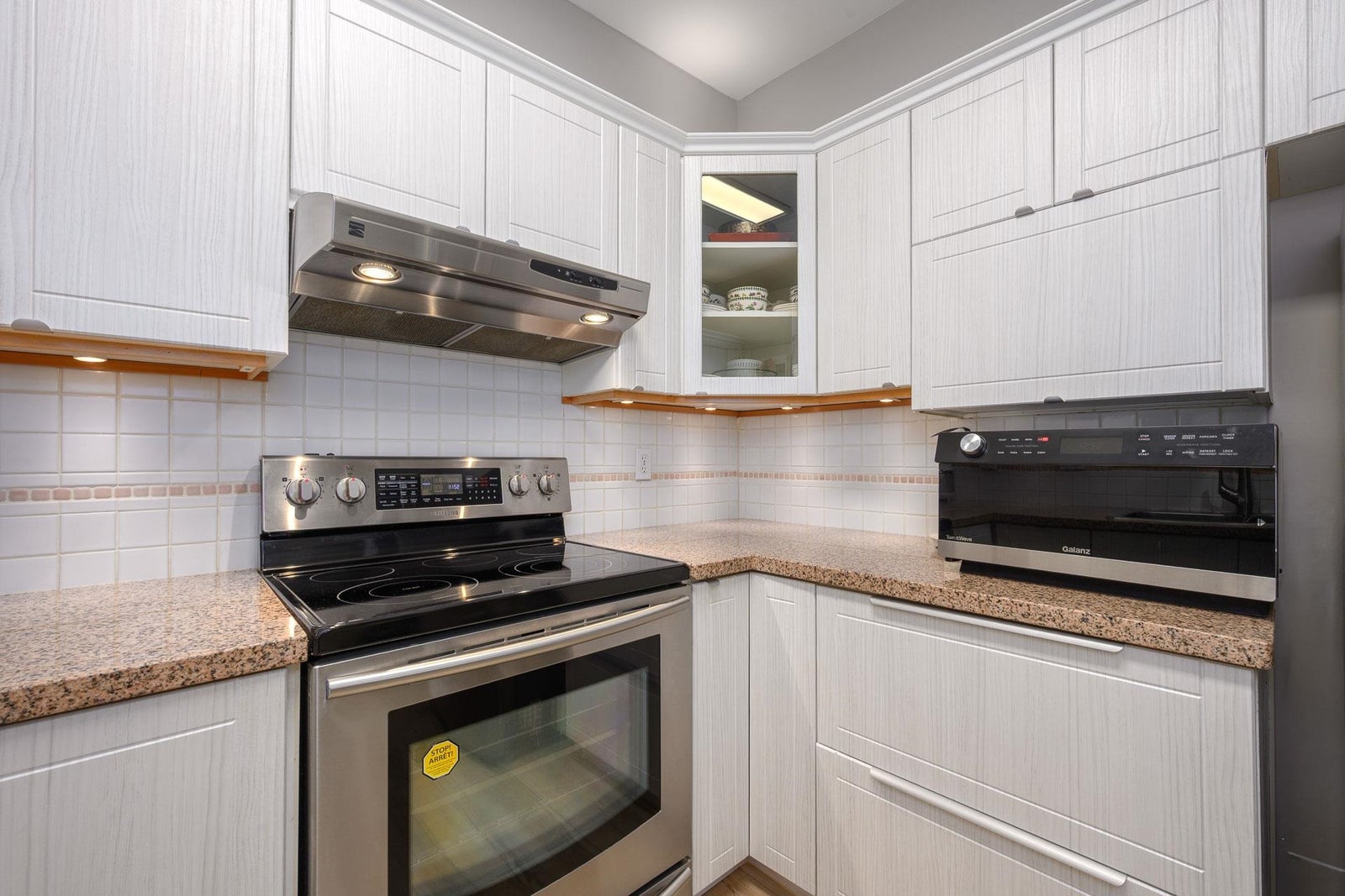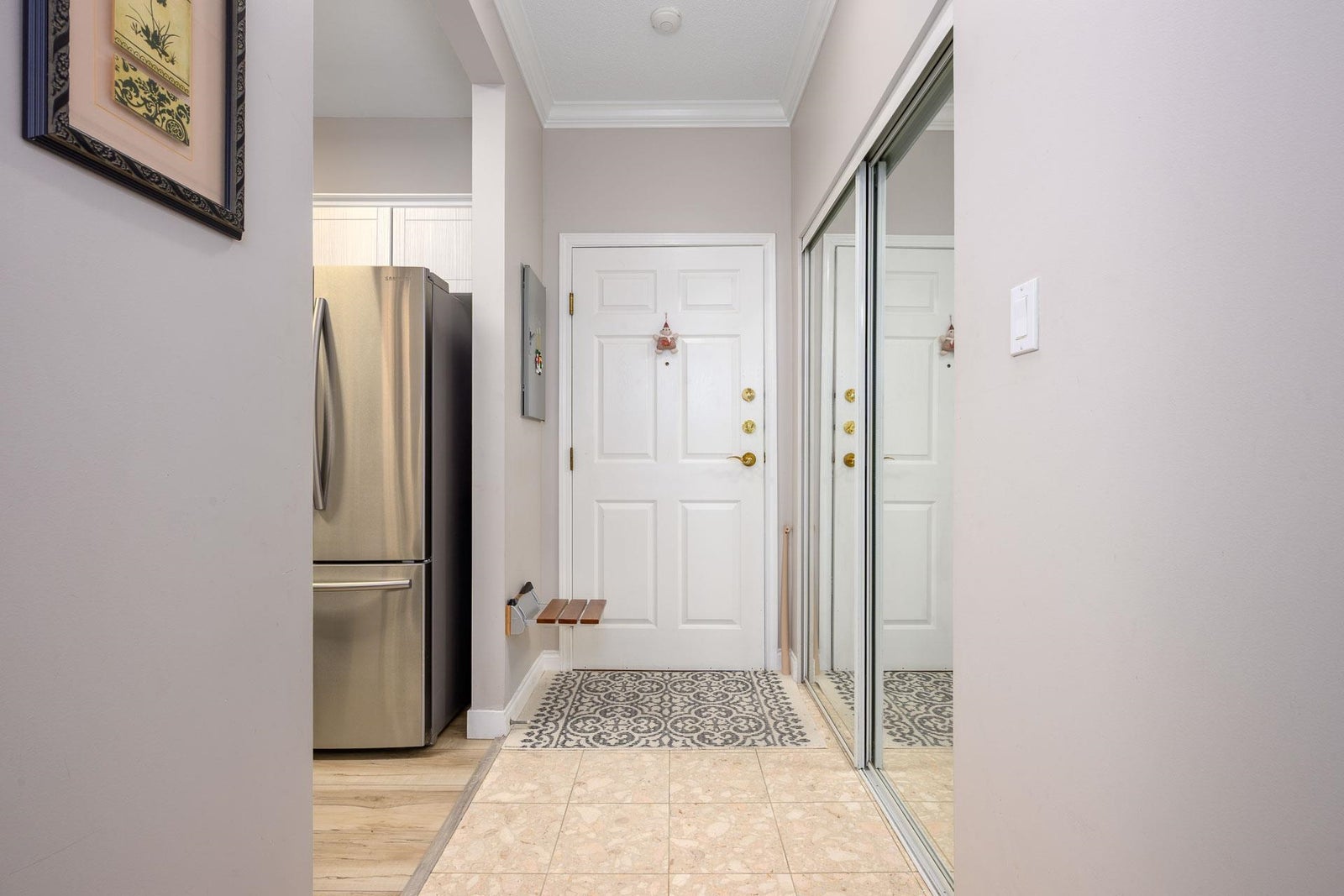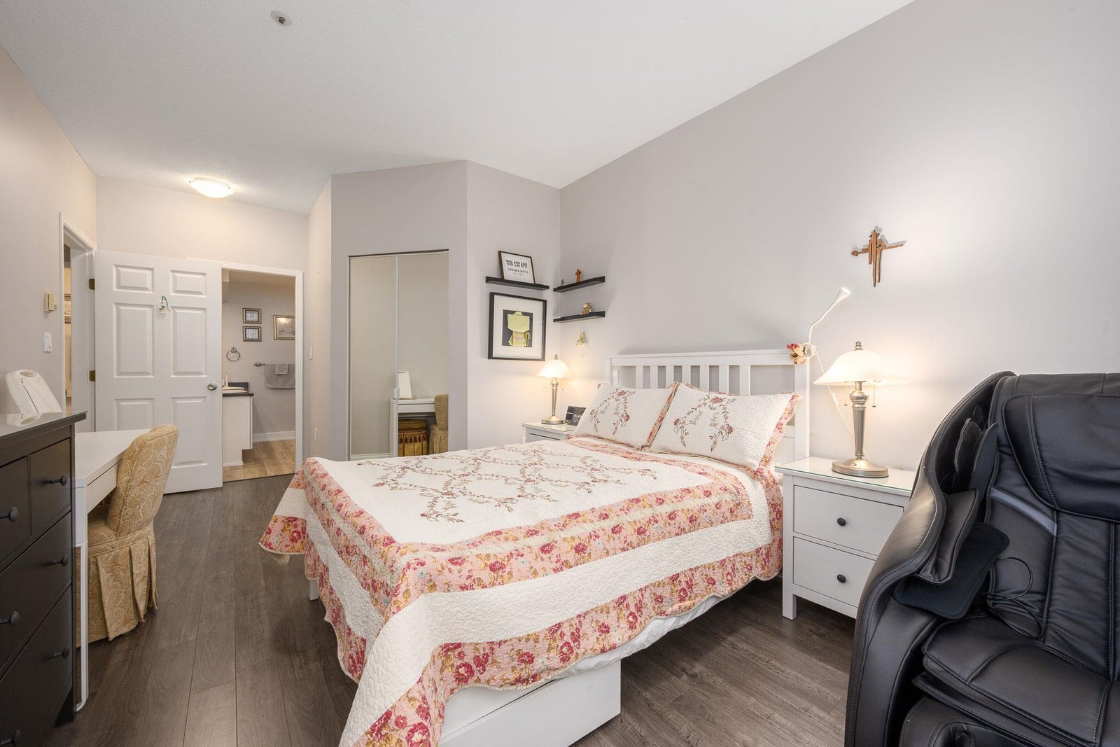 Beautifully bright renovated 2 bed, 2 bath home w/ 9’ ceilings & hot water radiant floor heating in a vibrant 55+ community. Move-in ready w/ brand-new kitchen, bathrooms, no carpets laminate flooring throughout, fresh paint & crown molding. Enjoy private courtyard garden views, gas fireplace, & two spacious bedrooms. Primary Bath has therapeutic bathtub (windows have solar film keeping the unit cooler in summer. In-suite laundry. Strata fee includes heat & hot water. Resort-style amenities: indoor pool, fitness center, clubhouse, guest suites, library/Playroom & workshop. 1 park + 1 locker. Proactive strata w/ nearly $1M in CRF. Secure visitor parking, Walk to SkyTrain, transit, Coq. Ctr, restaurants & aquatic ctr. Hoy Creek Trails. Open House Sunday February 15 2:00-3:30